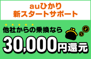 auひかり乗り換えスタートサポートで他社からの乗換なら最大30,000円還元!とってもお得になります。
