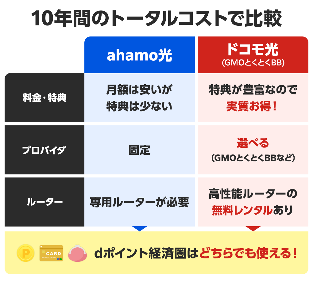 ポイント還元率「10倍」の差や最新ルーターの「贈呈」特典も踏まえたうえで、賢いahamoユーザーがあえて今「ドコモ光」を選ぶ理由を解説します。